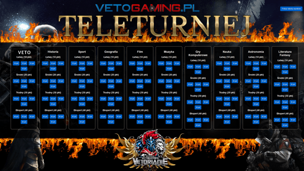 —————————————————————————————————︙TELETURNIEJ VETOGAMING —————————————————————————————————Zapraszamy na Teleturniej z okazji 10-lecia plutonu VETOGAMING! Już w sobotę, 8 marca 2025, o...